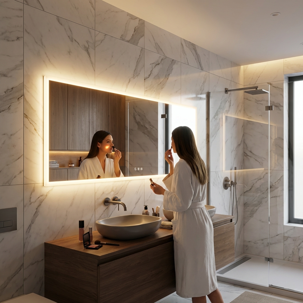 Zrkadlo THIN LUNA LED je navrhnuté tak, aby poskytovalo nielen estetickú hodnotu, ale aj praktické výhody. LED podsvietenie zabezpečuje dostatočné osvetlenie, čo je ideálne pre každodenné úkony ako je líčenie, holenie alebo iné osobné úpravy. Jeho veľká šírka a výška ponúkajú široký pohľad a vytvárajú dojem väčšieho priestoru v kúpeľni.