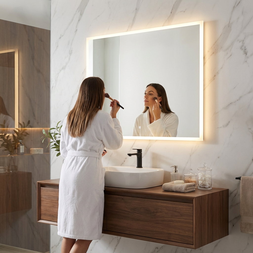 Zrkadlo THIN LUNA LED je navrhnuté tak, aby spĺňalo potreby moderného zákazníka. Jeho štíhly dizajn a podsvietenie vám umožňujú jednoduché a presné zrkadlenie, čo je ideálne pri úprave účesu alebo nanášaní make-upu. LED osvetlenie zabezpečuje jasné a rovnomerné svetlo, ktoré eliminuje tieňovanie a pomáha vám vidieť každý detail. Zrkadlo sa jednoducho montuje na stenu, čím šetrí miesto a pridáva na elegancii vašej kúpeľne.