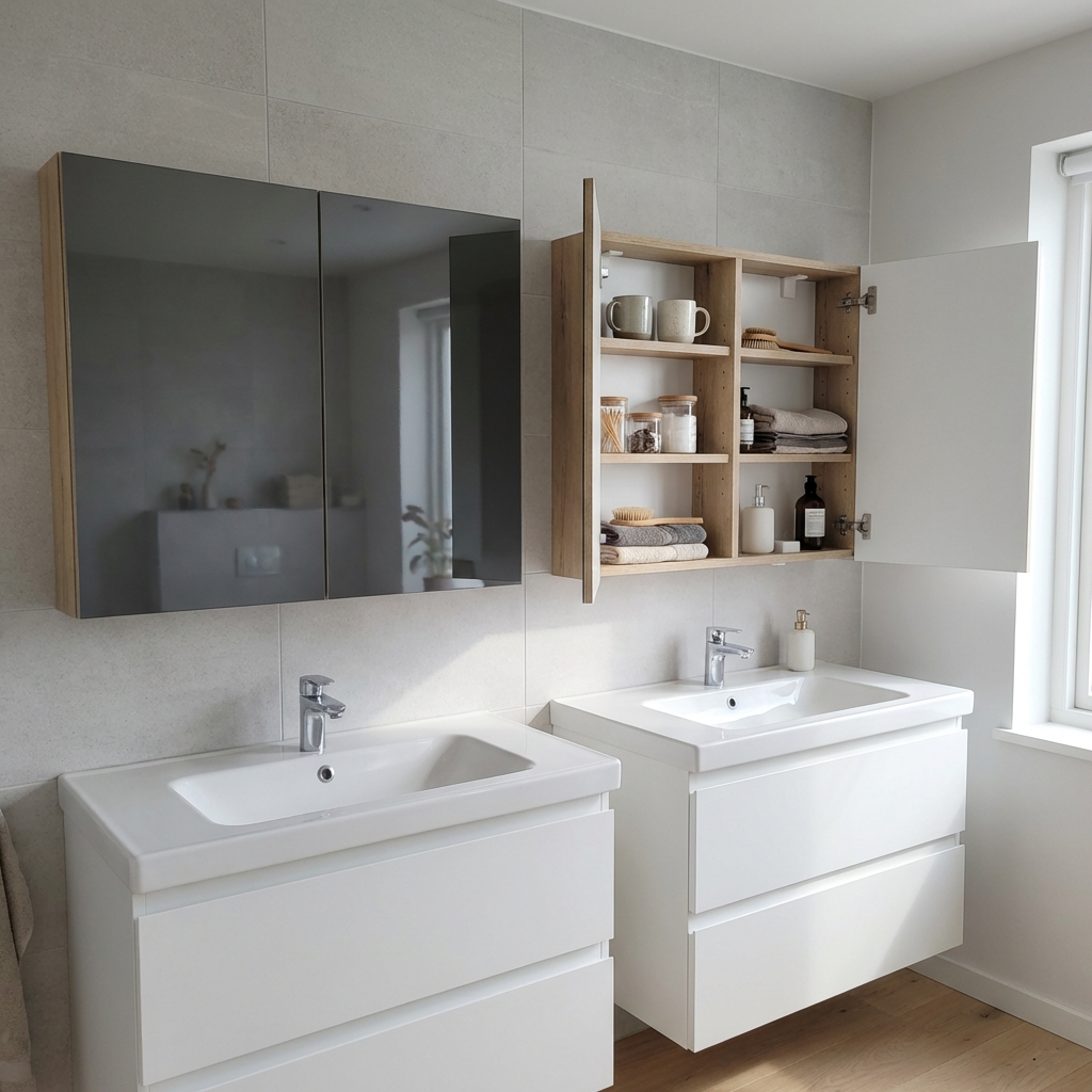 Táto zrkadlová skrinka ponúka praktické úložné riešenie pre všetky vaše kúpeľňové doplnky. Dvojdverový systém poskytuje jednoduchý prístup k obsahu skrinky, pričom zrkadlová predná časť opticky zväčšuje priestor a dodáva vašej kúpeľni moderný vzhľad. Skrinka je dodávaná v zloženom stave, čo šetrí čas pri montáži. Vďaka kvalitnému kovaniu Blum si môžete byť istí, že dvere sa budú plynulo otvárať a zatvárať, čím sa zvyšuje komfort každodenného používania.