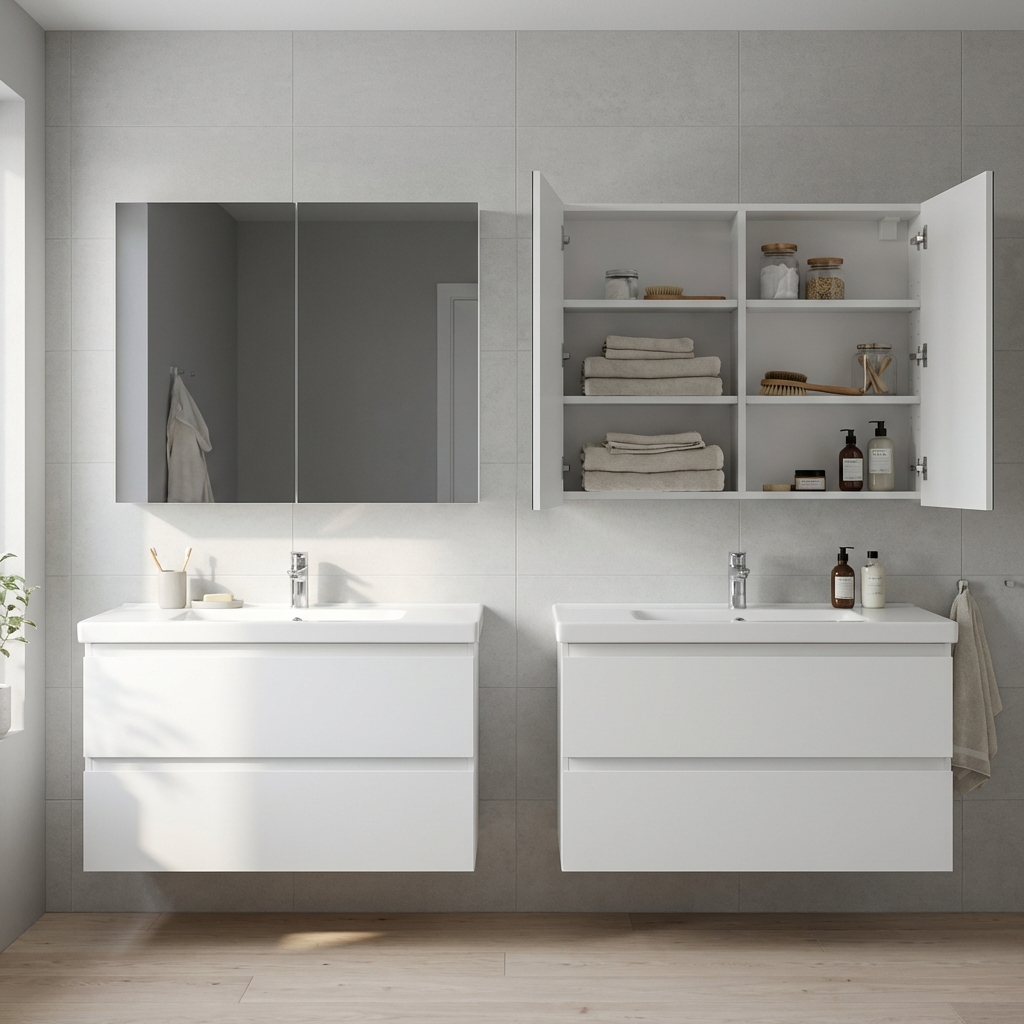 Investujte do zrkadlovej skrinky PRO do 1000 dvoj-dverovej a získať tak štýlové a funkčné riešenie pre vašu kúpeľňu, ktoré spĺňa všetky vaše požiadavky na úložný priestor a dizajn.