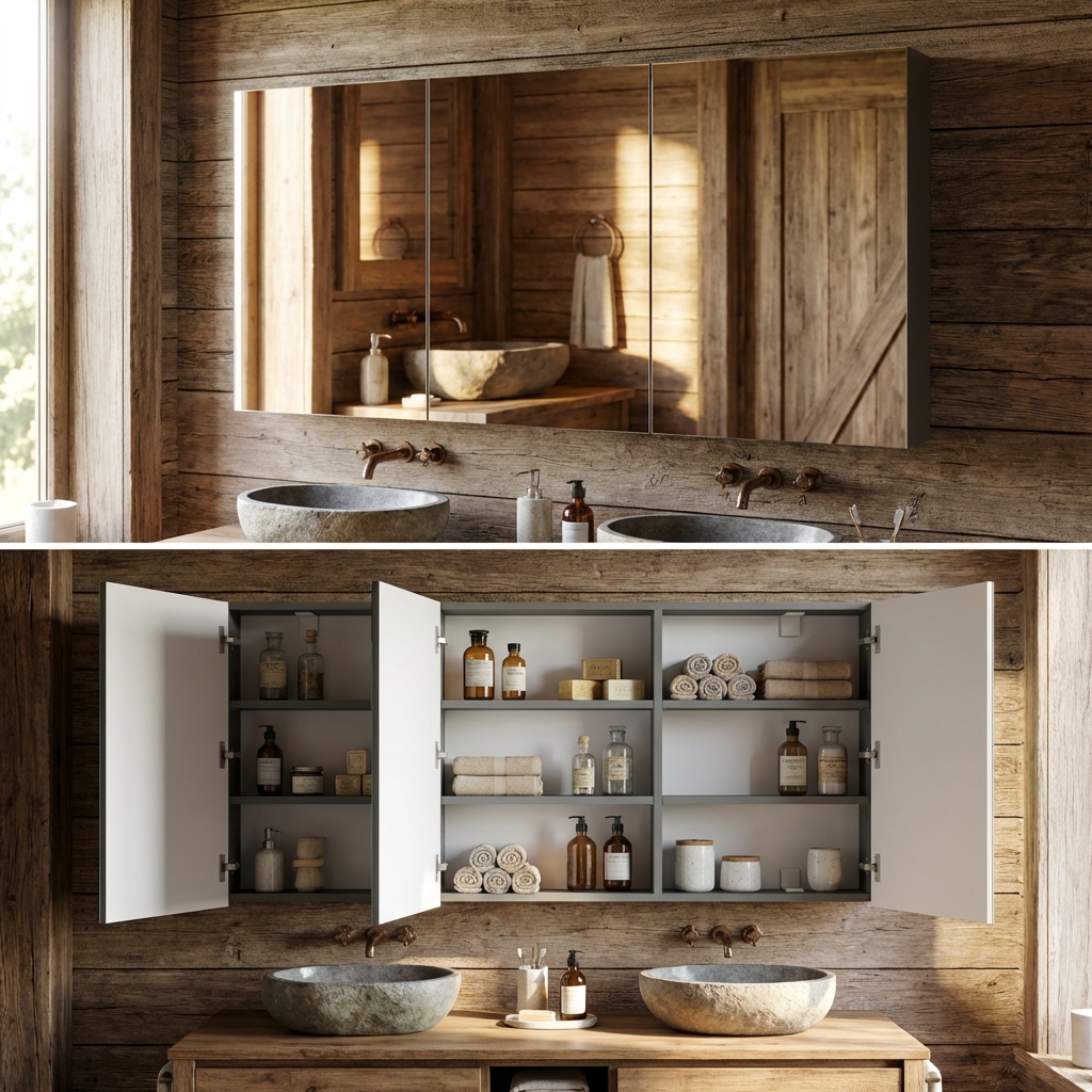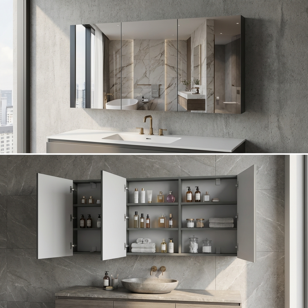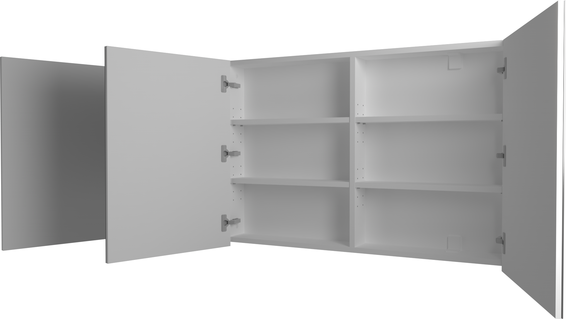 Táto troj-dverová zrkadlová skrinka je skvelým riešením pre uskladnenie toaletných potrieb a ďalších nevyhnutností. Vďaka dverám s výnimočným systémom Blum sa otvárajú hladko a ticho, čo zaručuje pohodlné používanie. Jej rozumné rozmery a elegantný dizajn umožňujú jednoduchú inštaláciu nad umývadlo alebo na stenu, čím optimalizujete priestor vo vašej kúpeľni. Skrinka poskytuje nielen úložný priestor, ale aj zrkadlovú plochu, ktorá opticky zväčšuje priestor a zvyšuje svetelnosť miestnosti.