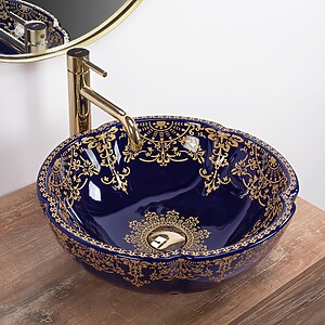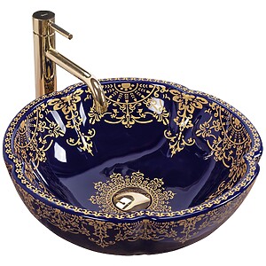 Umývadlo na dosku REA ROYAL – biele + zlatý okraj