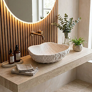 Umývadlo na dosku REA BELINDA MINI TRAVERTINE MATT