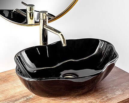 Umývadlo na dosku REA PEARL – matné čierne + zlatý okraj